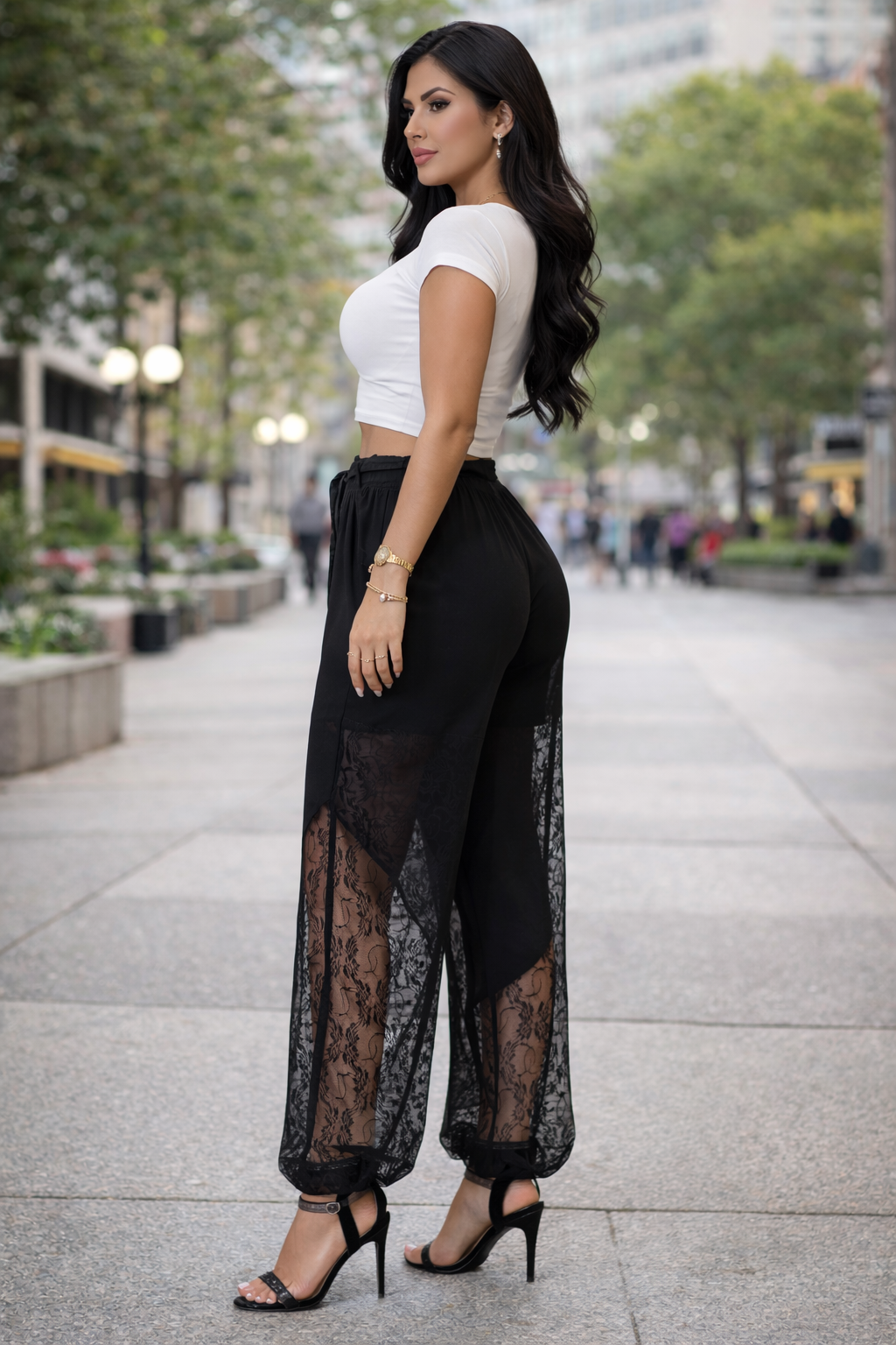 Lia- Pantalones de pierna ancha, con encaje transparente.